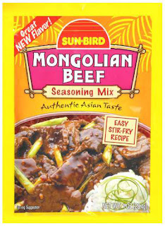 It took us about 25 minutes from slicing the beef to eating and it was REALLY good. I love meals like this b/c they are so easy and relatively healthy and hearty. The packet itself has about 100 calories, so whatever you add with the meat, soy and oil is all it has in it. I don't really count calories, but that sounds OK to me!!